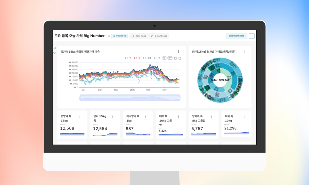 품목별 시세 추이, 산지별 출하 현황, 시장 트렌드를 한눈에 파악할 수 있는 인터랙티브 대시보드